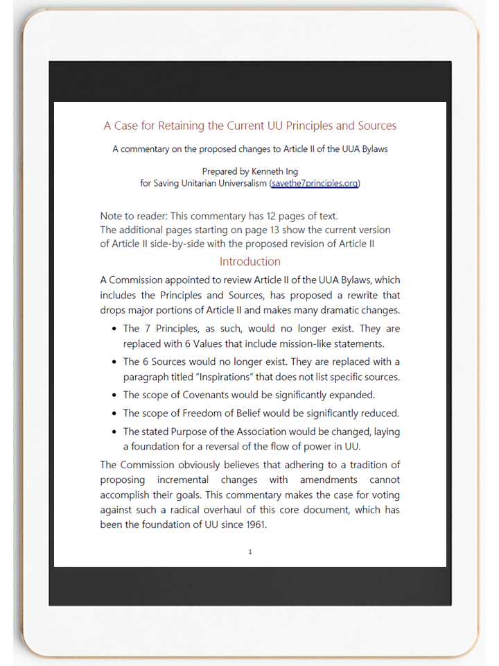 An in-depth discussion making the case for retaining our Principles and Sources