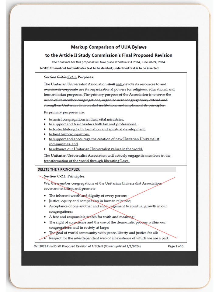 Compare the text of UUA Article II bylaws with proposed changes as released by the Commission on Oct 30, 2023.